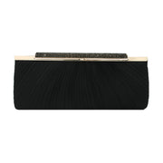 Premium Crystal Top Pleated Satin Hard Frame Clutch Evening Bag